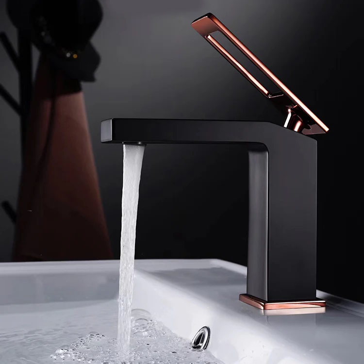 matte black single handle bathroom sink faucet with pop up overflow brass drain