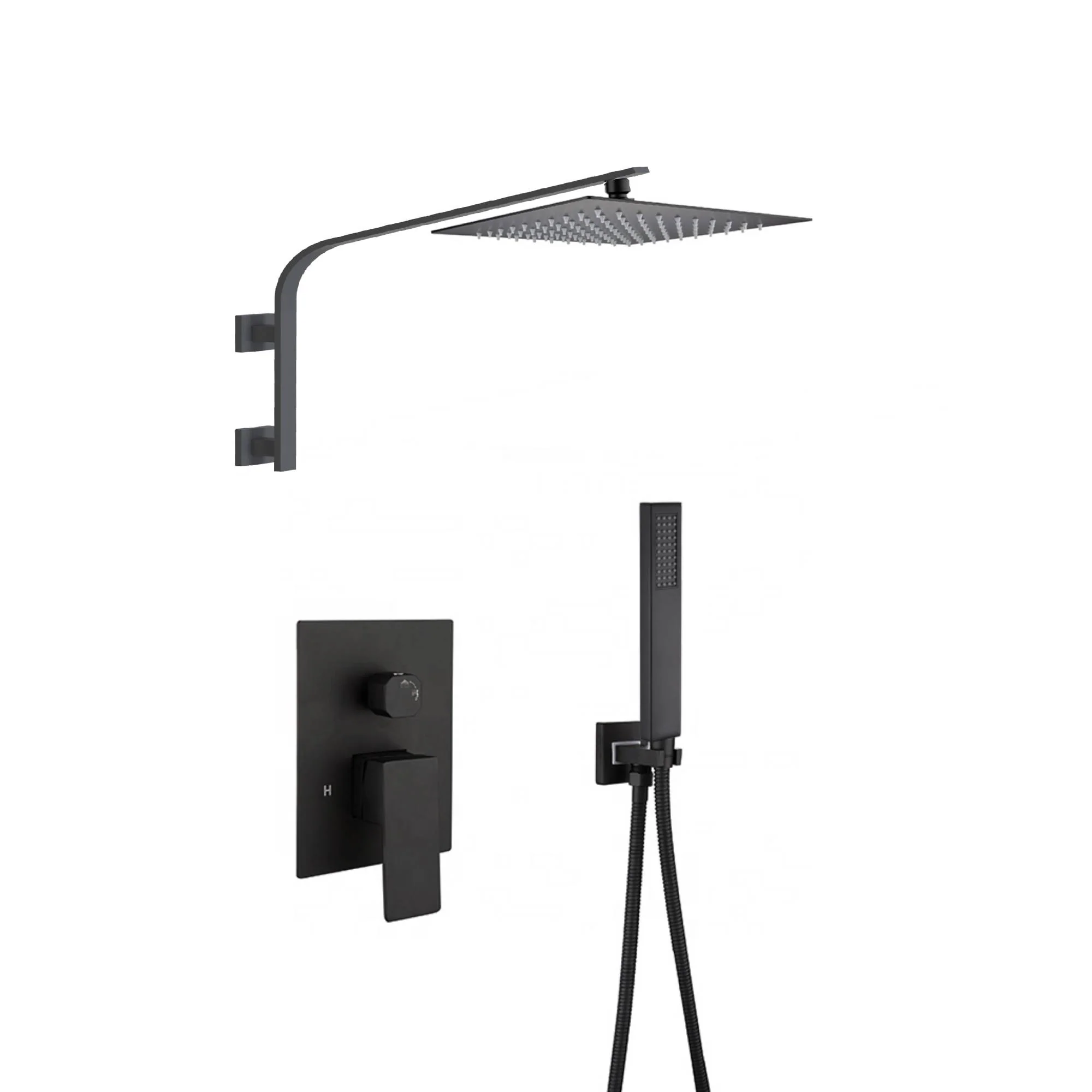 12inch 2 way Big arc Wall Mounted Matte Black Shower System with two function pressure balance Rough-in Valve Body and Trim