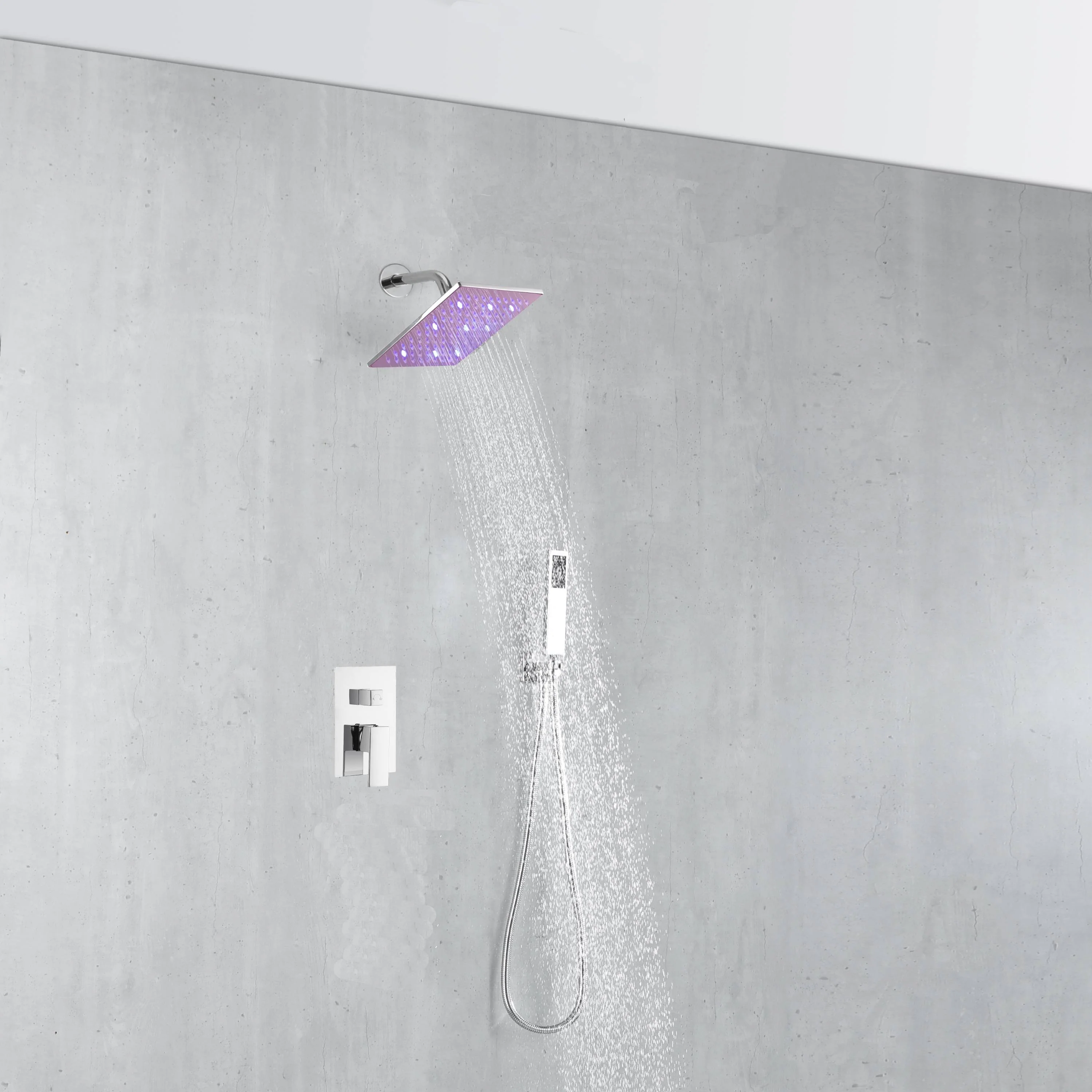 Chrome 6 inch regular or 8 INCH 3 LED colors regular head Wall Mounted Rainfall Shower Faucet with Hand Shower Mixer Tap